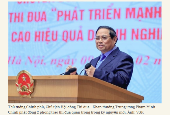 Tại Lễ phát động hai phong trào thi đua quy mô toàn quốc ngày 9/2, Thủ tướng Chính phủ Phạm Minh Chính khẳng định: Để
